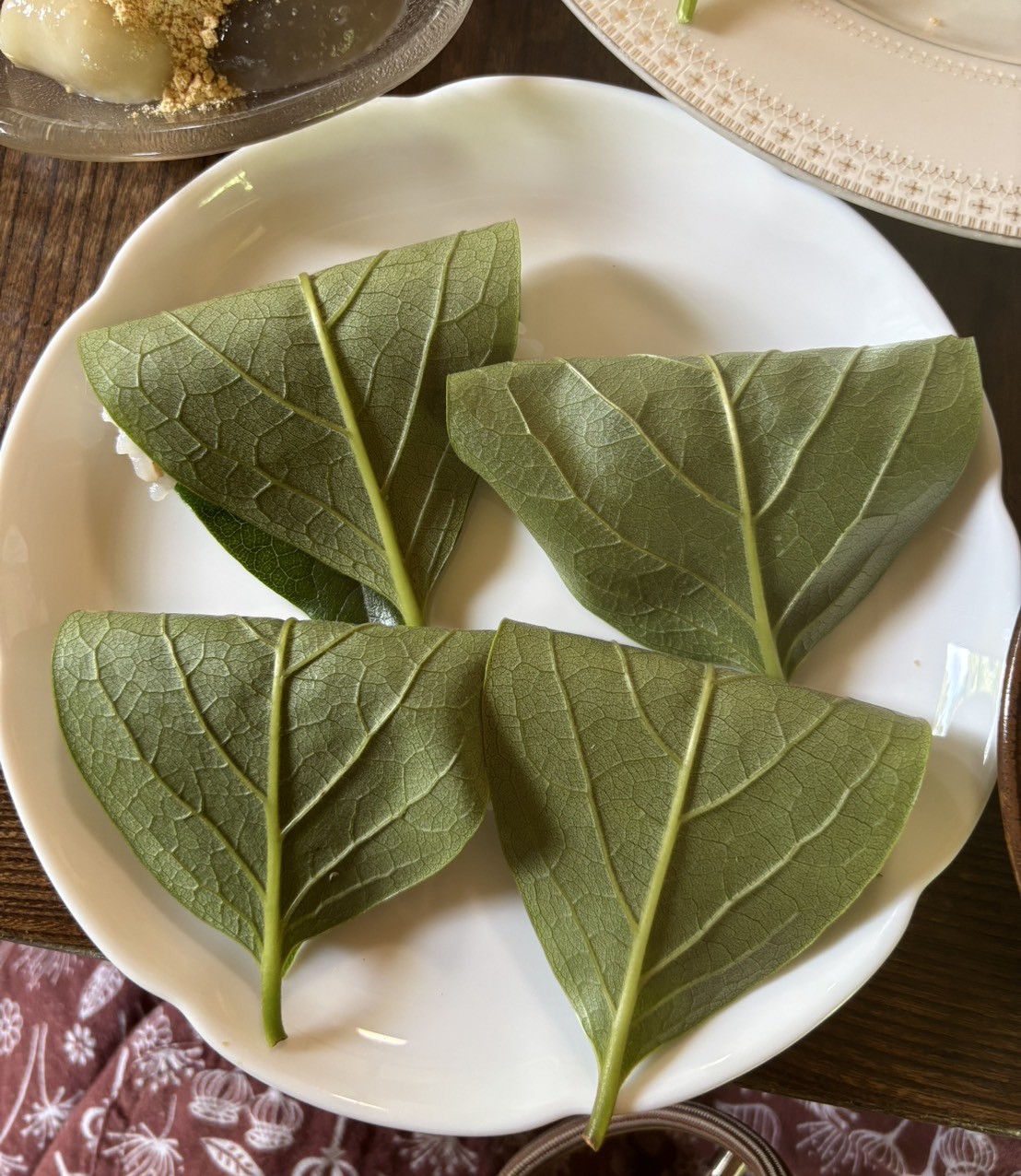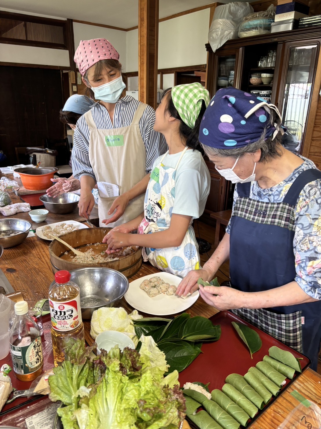 庭の柿の葉を使った柿の葉寿司、付け合わせに庭で採ったパセリもたっぷり使い、お金では買えない豊かな食卓になりました(^^♪)